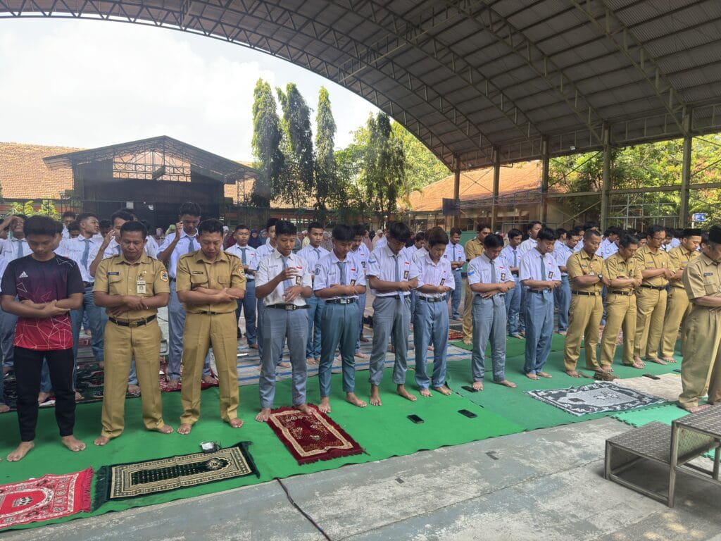 Sebanyak kurang lebih 1000 siswa bersama guru dan karyawan melakukan ibdah sholat duhur berjamaah. kegiatan ini dimaksudkan untuk menanamkan nilai spiritulitas pada masing-masing siswa. praktik beribadah adalah salah satu 7 kebiasaan anak indonesia hebat yang disampaikan oleh kemendikdasmen.